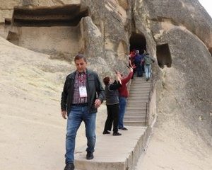 TÜRKİYE’DE gerçekleştirilen Küresel Gazeteciler Konseyi‘nin ev sahipliğinde düzenlenen 21.Dünya Rus Medyası kongresine katılmak üzere ülkemize gelen 85 ülkeden Rus dili konuşan 170 gazeteci Türkiye’nin önemli turizm merkezlerinden Kapadokya bölgesini ziyaret etti. Kapadokya, Rus dili konuşan gazetecileri adeta büyüledi; “Burayı görmeden dünyayı görmüş olmazdık” dediler. Küresel Gazeteciler Konseyi Genel Başkanı Mehmet Ali Dim başkanlığında Kapadokya bölgesini ziyarete gelen gazeteciler Göreme Açık Hava Müzesi’ni ziyaret ederek buranın eşsiz güzelliklerini fotoğraflarken rehberlerden de Göreme Açık Hava Müzesi hakkında bilgiler aldı. Küresel Gazeteciler Konseyi Genel Başkanı Mehmet Ali Dim yaptığı açıklamada, 21.Dünya Rus Medyası kongresine katılmak üzere ülkemize gelen ve 85 ülkede görev yapan 170 gazeteci ülkemizin önemli turizm merkezlerinden Kapadokya’da misafir etmekten dolayı son derece mutluyuz dedi. Dim, “Küresel Gazeteciler Konseyi olarak misyonumuza uygun bir şekilde olarak ülkemizin, sektörümüzün menfaatleri, işbirliği, dayanışma, dostluk gibi unsurları artırmak için uluslararası çalışmalar yapıyoruz. Moskova’da merkezi olan Rus Medya konseyi de bizim bu alanda partnerimizdir. Rusya Devlet Başkanlığı tarafından kurulan önemli bir kuruluş. 85 ülkeden 10 bine yakın üyesi olan bir kuruluştur. Her yıl farklı ülkeden kongresini yapıyor. 21. Dünya Rus Medya kongresi de Türkiye’de yapıldı. Dün kongrenin başlangıcını Ankara’da yaptık. O toplantımıza da Cumhurbaşkanı Yardımcısı Sayın Fuat Oktay katıldı. Yine Türkiye’de çok sayıda yetkili vardı. Yarında Alanya’da hem kapanış programı var hem de çalıştayları var. Ama şimdi böyle bir grup gelince yani 170 tane Rus dili bilen gazeteci gelince bunların birçoğu Türkiye’ye ilk defa geliyor. Türkiye denilince akla ilk olarak tabi ki Kapadokya geliyor. Kapadokya’yı biz zaten en baştan itibaren programa koymuştuk. Kapadokya bölgesindeyiz. Ümit ediyoruz ki hem kendi sosyal medyalarında hem kendi çalıştıkları medya kurum ve kuruşlarında ülkemizden güzel bir şekilde bahsedecekler. Dünkü açılış kongresinde yine Fuat Oktay’ın bahsettiği gibi Soçi’de Türkiye ile Rusya’nın ortak mutabakatı ve Türkiye’nin Güneydoğusunda ki güvenlik sorununu aşması için başlattığı Barış Pınarı Harekatı’nın sona ermesi anlaşmasının akabinde böyle bir seyahatin olması başka bir anlam ifade ediyor. Yani bu ülke arasındaki dostluğun, dayanışmanın ve iki ülke halkı arasındaki dostluk ve dayanışmanın daha da artacağı anlamında bir işaret. Bu bakımdan bu grubun bir misyonu da var. İnanıyoruz ki bu tür etkinlikler ülkemizin hem turistlik, hem ticari potansiyeli hem de mesleğimiz açısından dayanışmasına da katkı sağlayacağını düşünüyoruz” diye konuştu.