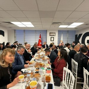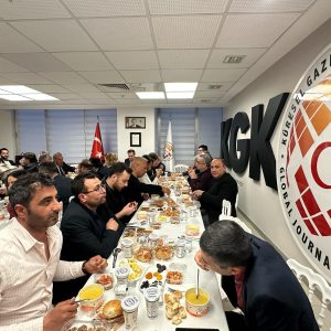 Küresel Gazeteciler Konseyi (KGK), gelenekselleşen iftar programının ilki bu yıl da Ankara’da KGK genel merkezinde gerçekleştirildi. Genel Başkan Mehmet Ali Dim’in yanısıra Genel Başkan Yardımcısı Yakup Aslan, Yönetim Kurulu üyesi Seda Demir ile Yaygın Medya Meclis Başkan Vekili Ünsal Karabulut’un konukları karşıladığı iftarda, Ankara’da görev yapan KGK üyesi gazetecilerin büyük bir çoğunluğu bir araya geldi. Balgat’taki genel merkez binasının fuaye salonunda kurulan iftar sofrası, konseyin birlik, beraberlik ve dayanışma ruhunu yansıttı. KGK Başdanışmanı Prof. Dr. Zakir Avşar, Türkiye Gazeteciler Federasyonu Genel Başkanı Yılmaz Karaca, Şiddetle Mücadele Vakfı Başkanı Adem Solak ile birçok gazeteci, iftar sofrasında buluşarak Ramazan ayının manevi atmosferini paylaştı. İftar buluşmasına katılanlar, gazeteciliğin günümüzdeki durumu, etik sorumluluklar ve sektörde yaşanan gelişmeler üzerine sohbet etti. Genel Başkan Dim, bu tür organizasyonların mesleki birlikteliği artırdığına ve Ramazan ayının ruhunu en güzel şekilde yaşattığına vurgu yaparak, katılımcılara teşekkür etti. Konuklara iftar sofrasında, iftariyelikler, çorba, çoban salata, kavurma, pilav, taze fasulye yemeği ve tatlı ikram edildi. İftar buluşması çay ikramıyla sona erdi.