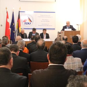 KGK Genel Başkanı Mehmet Ali Dim ise tüm üyeleriyle toplantıya katılan TDU’ya ve Türk toplumu temsilcilerine teşekkür ederek, bu birlik ve beraberlik tablosunun kendilerini çok etkilediğini söyledi. Yaptığı konuşmada Türk-Alman ilişkileri denince eskilere gitmek gerektiğini hatırlatan Dim, 2. Dünya Harbi’nden sonra Almanya’nın yeniden inşasında Türkiye’nin üstlendiği role dikkat çekti. Dim, 5 milyon kadar Türk kökenli vatandaşın yaşadığı Almanya’da, Alman politikacıların Türkiye’ye karşı hassas davranması gerektiğini söyledi. Dim, “Bahar Kalkanı Harekatı dolayısıyla Merkel’in Türkiye lehine yorumlanabilecek mesajları bizim içimizi ferahlattı. Ama Hanau’daki ırkçı saldırıda 4 soydaşımızı kaybetmemiz içimizi burktu” dedi.
