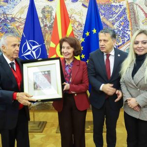 Kuzey Makedonya’nın başkenti Üsküp’te Küresel Gazeteciler Konseyi (KGK) heyeti olarak Kuzey Makedonya Cumhurbaşkanı Gordana Silyanovska-Davkova’yı ziyaret ettik. Kendisi gerçek bir Türk dostu olduğunu belirterek, Türkiye’nin Asya ülkeleri ile ilişkilerdeki muazzam rolünden, çok kutuplu yeni dünya düzeninde AB’nin kendi gözünden göremediklerini Türkiye’nin öngörme gücünden bahsetti. Ayrıca, COP 29 zirvesi kapsamında Azerbaycan’da bulunduğunu ve Bakü’nün kültürel yapısından büyülendiğini aktararak ülkelerimiz arasındaki ilişkileri önemsediğini iletti. Medya işbirliğinin önemine de söz ederek, KGK heyetinin ziyaretinden duyduğu memnuniyeti dile getirdi. KGK Genel Başkanı Mehmet Ali Dim de kendisine kabulünden dolayı teşekkür ederek, anı plaketi ve Küresel Medya dergisi takdim etti.