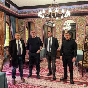 KGK Genel Başkanı Mehmet Ali Dim, Azerbaycan’ın en büyük medya kuruluşlarının sahipleriyle tarihi Şirvanşah Müze Restoran’da öğle yemeğinde buluştu. Dim “Değerli dostum Rauf Arifoğlu’na muhteşem ev sahipliği için çok teşekkür ederim” dedi.