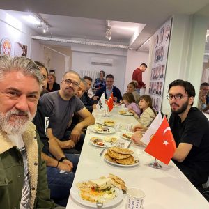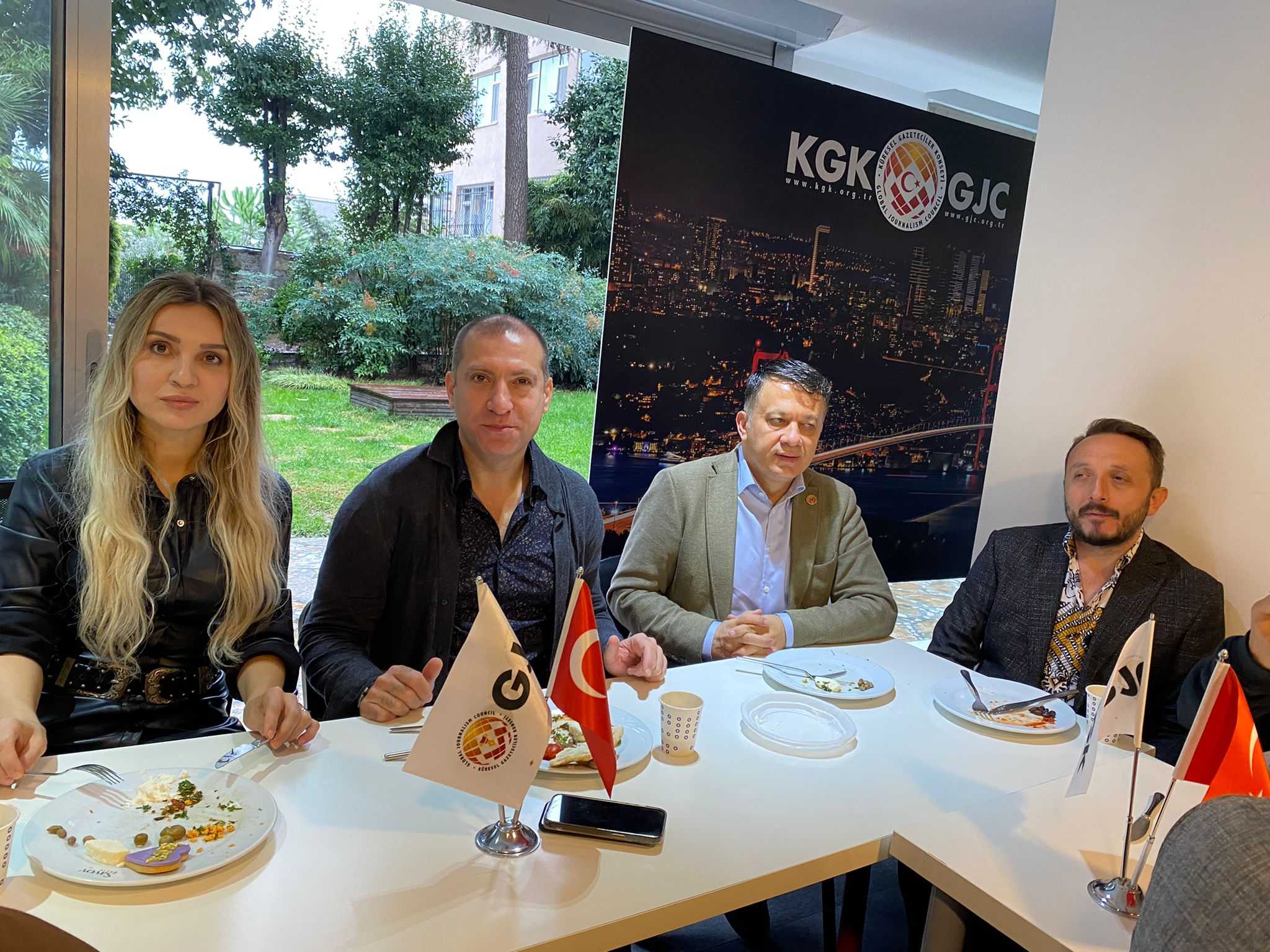 İstanbul Cihangir’de bulunan KGK ofisinde, Genel Başkan Mehmet Ali Dim’in yanısıra, Meclis Başkanları Buse Biçer Akbaş (Yaygın Medya), İsrafil Avcı (Yerel Medya) ve Elşad Eyvazlı (Dış Medya) ile Yönetim Kurulu’ndan Genel Başkan Yardımcıları Bülent Aydemir, Savaş Çokduygulu ve Kahraman Halisçelik, Genel Sekreter Lütfü Karakaş, Genel Sekreter Yardımcısı Aynur Tattersall, Mali Başkan Yardımcısı Gürsel Eser, yönetim kurulu üyeleri Sertaç Virancık, Y. Ziya Çakır, M. Duran Özkan ve Ercan Arslan’ın da ev sahibi olarak katıldığı bir kahvaltı etkinliği gerçekleştirildi. Kahvaltıya, KGK Meclis üyeleri Ahmet Coşkunaydın, Hayati Arıgan, Ferhat Yıldırım, Anna Andreu ile danışma kurulu üyelerimiz Ali Atasever ve Emral Cömert, bir kısım İstanbul üyeleri ile yabancı medya temsilcisi yerli ve yabancı gazeteciler ile yabancı misyon şefleri, bazı STK başkan ve yöneticilerinin katıldığı açık büfe kahvaltıya, bazı ülkelerin İstanbul Başkonsolosları ile Yabancı Medya Derneği Başkanı Christian Feiland, gazeteci öğretim üyesi Prof. Dr. Suat Gezgin ve Türk Dünyası Kültür Sanat ve Sinema Vakfı Başkanı Erdoğan Erdoğdu katılım gösterdi. 3’üncü yıl pastasının kesimi sırasında konuşan Genel Başkan Dim, sözlerine “Bartın’da meydana gelen maden kazasında yaşamını kaybeden madencilerin acısını yüreğimizde hissediyoruz” diye başladı. Dim, 3’üncü yılı gururla idrak ettiklerini belirterek, “Ortada bir başarı varsa bu başarı hepimizindir. Bizlere destek veren ve daima motive eden Dışişleri Bakanımız Mevlüt Çavuşoğlu başta olmak üzere, kurucularımız ve yönetim kurulumuz ile tüm üyelerimize şükran borçluyuz. 58 ülkede temsilcisi, Ankara ve İstanbul’da ofisi ve geri kalan 79 ilde temsilciliği bulunan bir kuruluşu ayakta tutmak kolay değildir. Yarattığımız kaynaklarla, misyonumuza uygun olarak ülke dışında medya aracılığıyla kamu diplomasisi faaliyetlerinde bulunuyoruz. Bu alandaki boşluğu başarıyla doldurduğumuza inanıyorum” dedi.