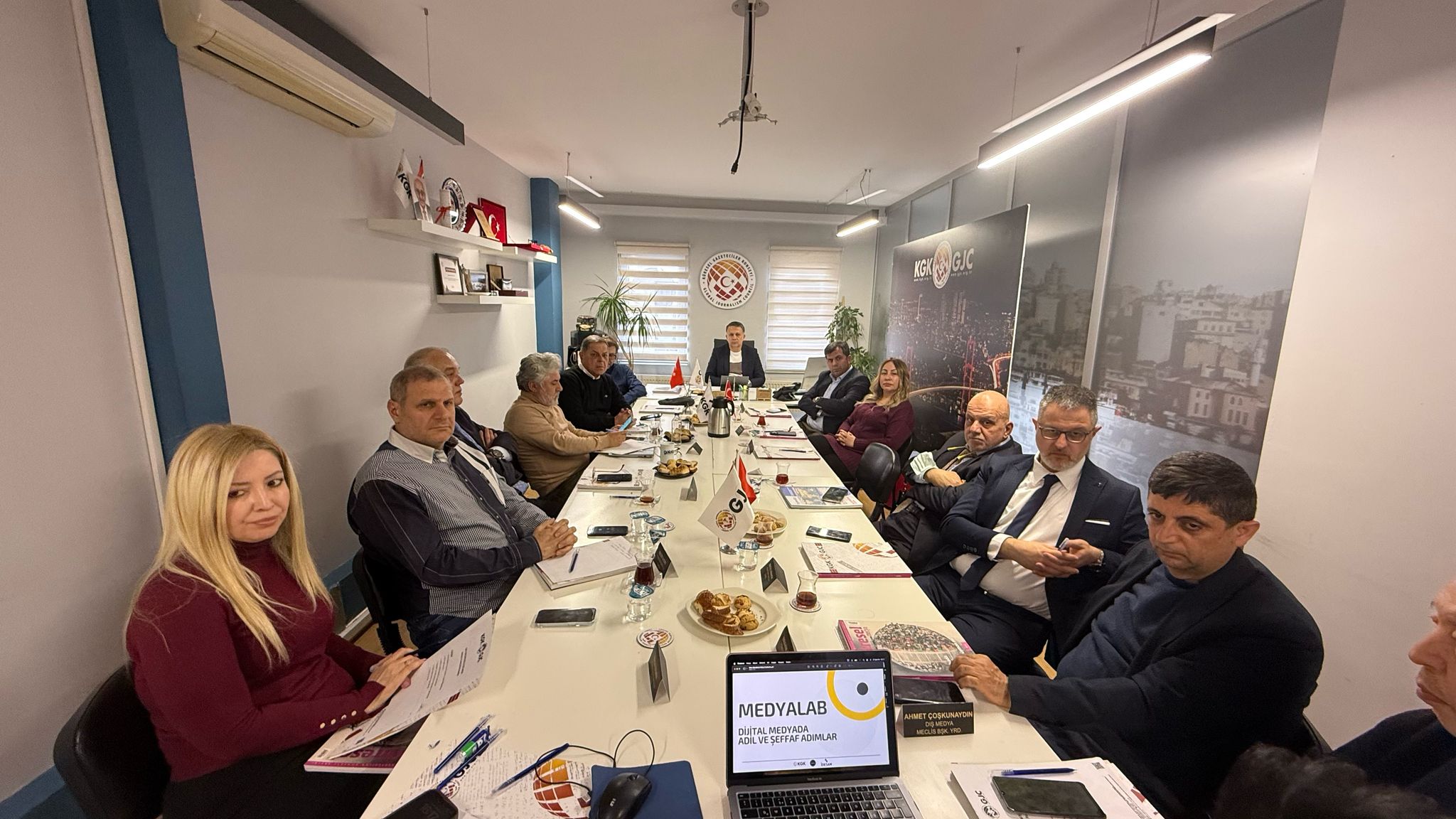Küresel Gazeteciler Konseyi (KGK) Yönetim Kurulu, Genel Başkan Mehmet Ali Dim başkanlığında, İstiklal Caddesi’nde bulunan İstanbul ofisinde toplandı. Toplantıda, medya sektöründeki önemli gelişmeler başta olmak üzere, çeşitli eğitim projeleri ve kurumsal stratejiler üzerine kapsamlı değerlendirmeler yapıldı.