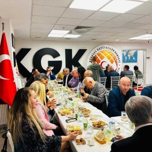 Küresel Gazeteciler Konseyi (KGK) genel merkez binası fuaye alanında kurulan iftar sofrasının onur konuğu Tarım eski Bakanı Mehdi Eker oldu. Her yıl gerçekleştirilen iftar buluşmasına, KGK adına Genel Başkan Mehmet Ali Dim, Genel Başkan Yardımcısı Bülent Aydemir ve Genel Sekreter Lütfü Karakaş ile meclis üyeleri Yakup Aslan, Ünsal Karabulut, Neşat Gündoğdu, Olgunay Köse, Seda Demir, Yaşar Önel, Denis Solovkyh, Nalan Yazgan, Deniz Büstani, Bekir Nazım Ada, Muhammed Vefa Özalp, Ecem Toplar, Hacı Odabaş, Kemal Özdilek, Fatih Melih Maradit ve KGK Danışma Kurulu Başkanı Dr. İmbat Muğlu ile Danışma Kurulu üyeleri Prof. Dr. Bayram Altan, Hanefi Uzunçam ve Cesurhan Taş da katıldılar. İftar sofrasında konuklara, iftariyeliklerin yanısıra çorba, güveç, pilav, salata, sebze yoğurtlama ve tatlı ikram edildi. Genel Başkan Dim, iftara katılanlara teşekkür “Bilhassa efsane Tarım Bakanımız Sayın Mehdi Eker olmak üzere, Ankaralı üyelerimize ve KGK dostu konuklarımıza şükranlarımızı sunarım” diye konuştu.