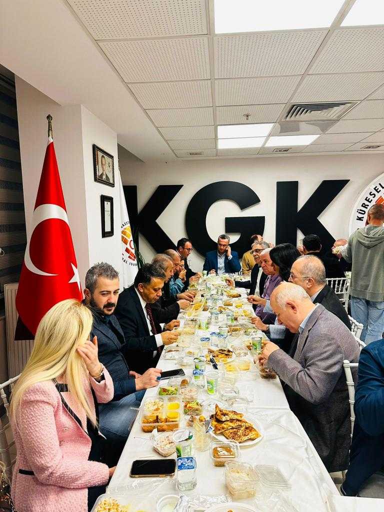 Küresel Gazeteciler Konseyi (KGK) genel merkez binası fuaye alanında kurulan iftar sofrasının onur konuğu Tarım eski Bakanı Mehdi Eker oldu. Her yıl gerçekleştirilen iftar buluşmasına, KGK adına Genel Başkan Mehmet Ali Dim, Genel Başkan Yardımcısı Bülent Aydemir ve Genel Sekreter Lütfü Karakaş ile meclis üyeleri Yakup Aslan, Ünsal Karabulut, Neşat Gündoğdu, Olgunay Köse, Seda Demir, Yaşar Önel, Denis Solovkyh, Nalan Yazgan, Deniz Büstani, Bekir Nazım Ada, Muhammed Vefa Özalp, Ecem Toplar, Hacı Odabaş, Kemal Özdilek, Fatih Melih Maradit ve KGK Danışma Kurulu Başkanı Dr. İmbat Muğlu ile Danışma Kurulu üyeleri Prof. Dr. Bayram Altan, Hanefi Uzunçam ve Cesurhan Taş da katıldılar. İftar sofrasında konuklara, iftariyeliklerin yanısıra çorba, güveç, pilav, salata, sebze yoğurtlama ve tatlı ikram edildi. Genel Başkan Dim, iftara katılanlara teşekkür “Bilhassa efsane Tarım Bakanımız Sayın Mehdi Eker olmak üzere, Ankaralı üyelerimize ve KGK dostu konuklarımıza şükranlarımızı sunarım” diye konuştu.