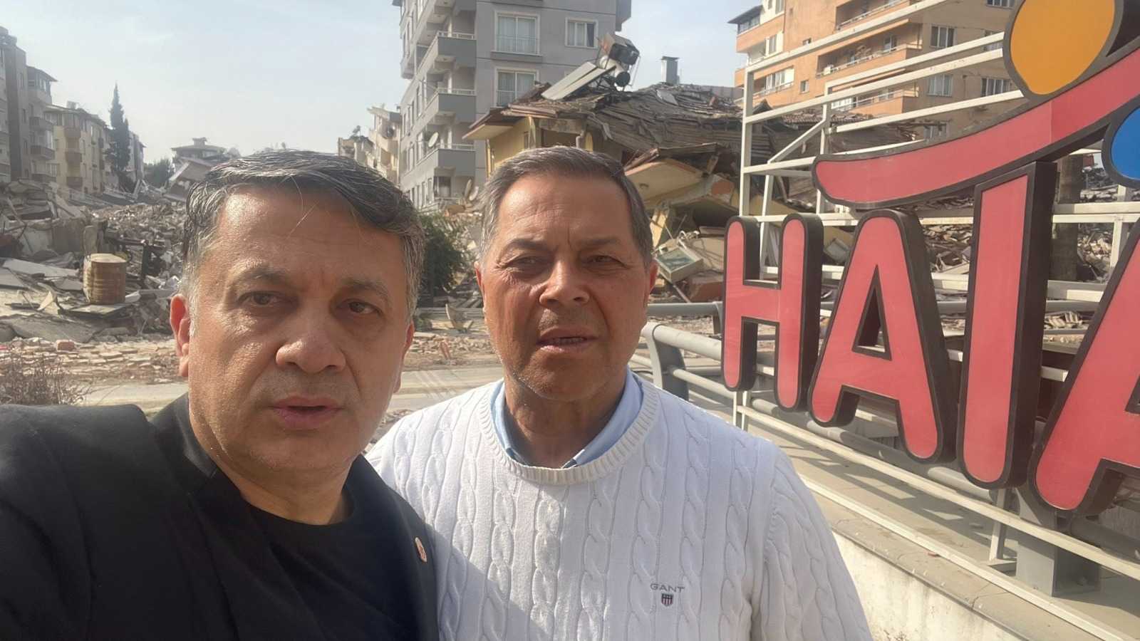 KÜRESEL Gazeteciler Konseyi (KGK) heyeti, 6 Şubat 2023 tarihinde yaşanan deprem felaketinin ardından üçüncü kez deprem bölgesinde. Duayen gazeteci yazar Yavuz Donat’la birlikte Hatay’a giden KGK Genel Başkanı Mehmet Ali Dim ve KGK Genel Başkan Yardımcısı Savaş Çokduygulu, Antakya’da depremin acı tablosu ile bir kere daha yüzleştiler. KGK heyeti, Kırıkhan’da 11 yakınını kaybeden Hatay Milletvekili Hüseyin Yayman’a da taziye ziyaretinde bulundular. Dim, “Yayman, deprem süresince memleketini hiç terk etmediği gibi halkı da terk etmemeye çağırıyor. Günlük yaşam yavaş yavaş normale dönüyor” dedi.