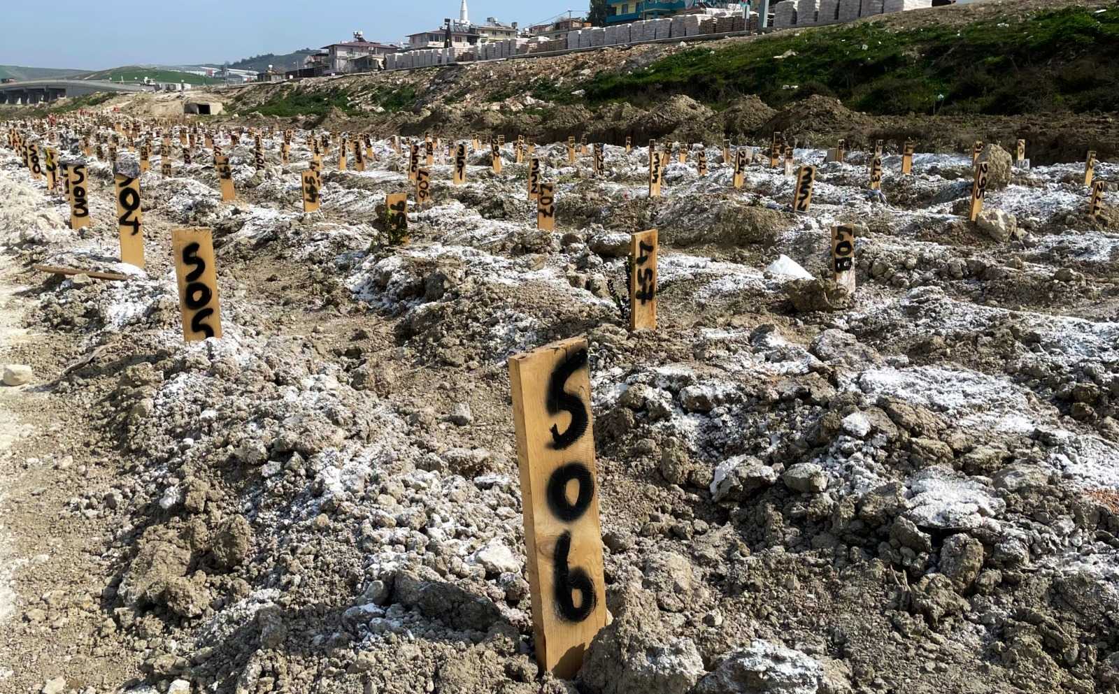 KGK heyeti, Antakya’da binlerce deprem kurbanının gömüldüğü mezarlığı da ziyaret ederek dualar ettiler. Dim, bu acı manzara karşısında “Sözün bittiği yer Antakya. 5 Şubat’ta yaşama dair umutları ve hayalleri vardı. 6 Şubat sabahı birer rakam dizini oldular. Ruhları şad olsun” dedi.
