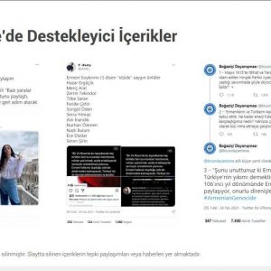 Konu ile ilgili bazı ünlü isimlerin yaptığı paylaşımlar sonucunda tepki aldığı ve bu tepkiden sonra mesajlarını silmelerinin de dikkat çektiğini aktarılan analizde, “Türkiye’de sözde soykırımı destekler nitelikte paylaşım yapan profiller ziyaret edildiğinde; PKK, HDP, PYD gibi örgüt ve parti mensubu oldukları görülmektedir” denildi.
