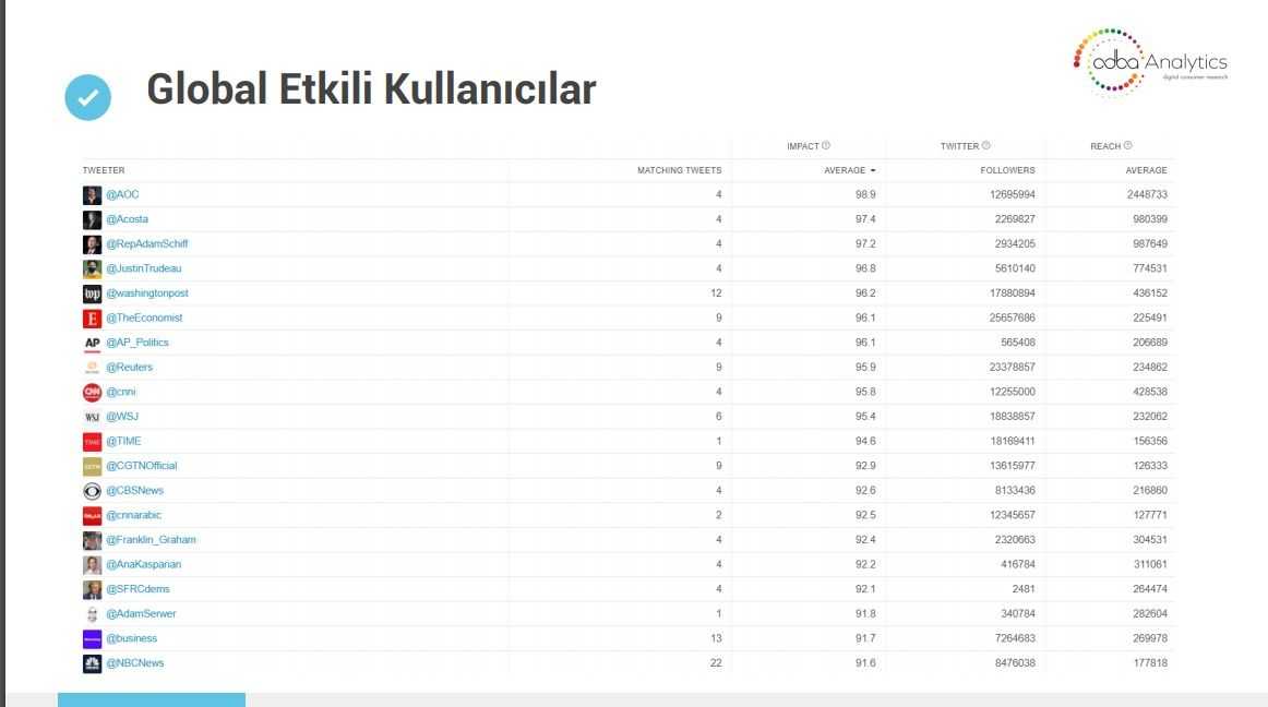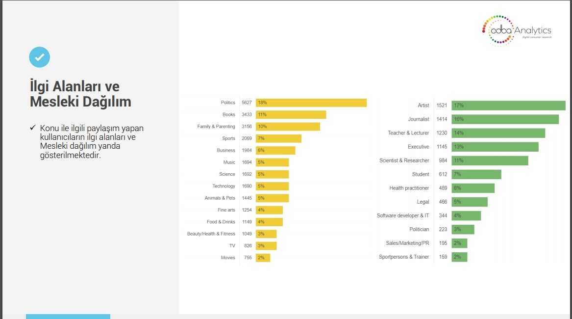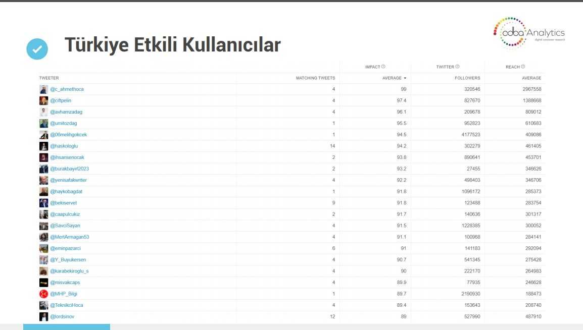 Türkiye’de etkili kullanıcıların kimler olduğunu, hangi cinsiyetlerin ve meslek gruplarının paylaşım yaptığını da analizine ekleyen KGK, tepkilerden sonra paylaşımlarını silen bazı ünlülerin paylaşımları ile bu tepki ve eleştirileri paylaşan ve iftirayı yayınlayan bazı hesapların paylaşımlarını da analize ekledi.
