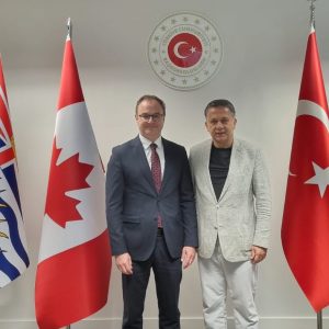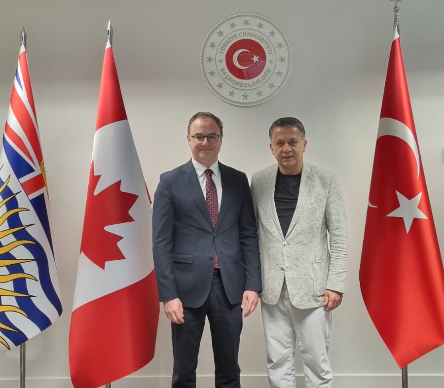 150 bine yakın Türk vatandaşının ikamet ettiği Kanada’yı ziyaret eden Küresel Gazeteciler Konseyi Genel Başkanı Mehmet Ali Dim, Türkiye’nin Vancouver Başkonsolosu Emrah Kurt ve Toronto Başkonsolosu Can Yoldaş’ı makamında ziyaret etti. Görüşmelerde, Küresel Gazeteciler Konseyi’nin yürüttüğü kamu diplomasisi faliyetleri ve Türkiye-Kanada ilişkileri ele alındı.