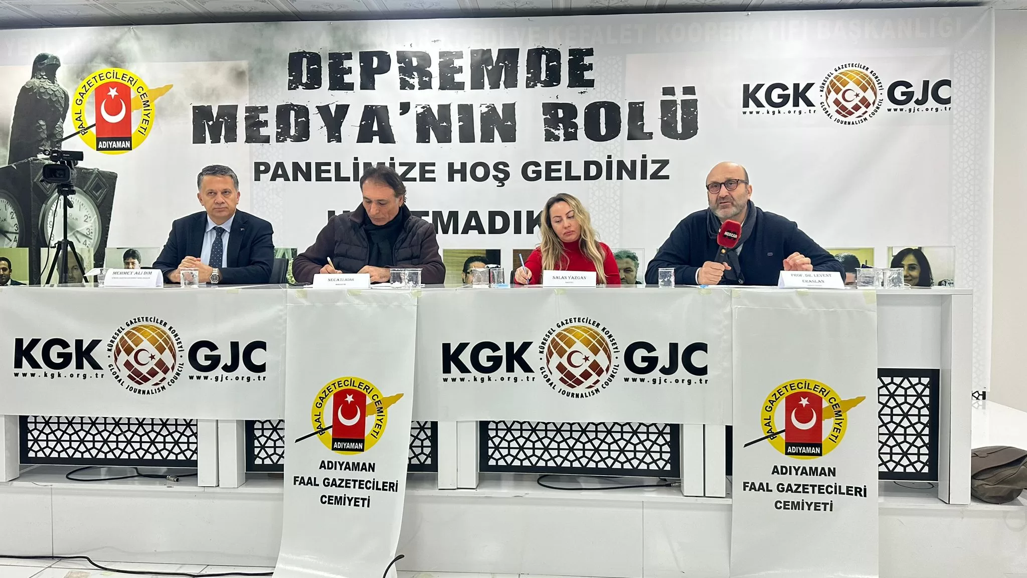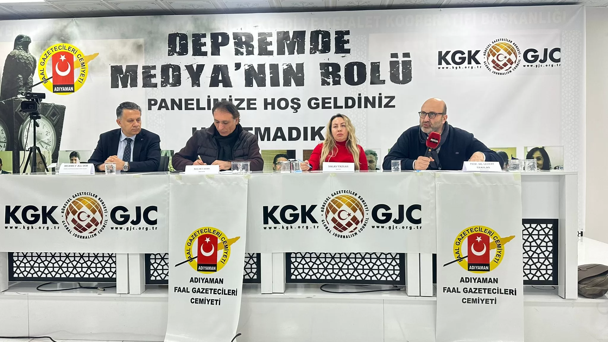 6 ŞUBAT depremlerinde adeta yerle bir olan Adıyaman’ın yeniden ayağa kalkma sürecine katkı sağlamak adına Adıyaman Faal Gazeteciler Cemiyeti (AGAD) ve Küresel Gazeteciler Konseyi (KGK) tarafından Adıyaman’da “Depremde Medyanın Rolü” konulu panel düzenlendi.