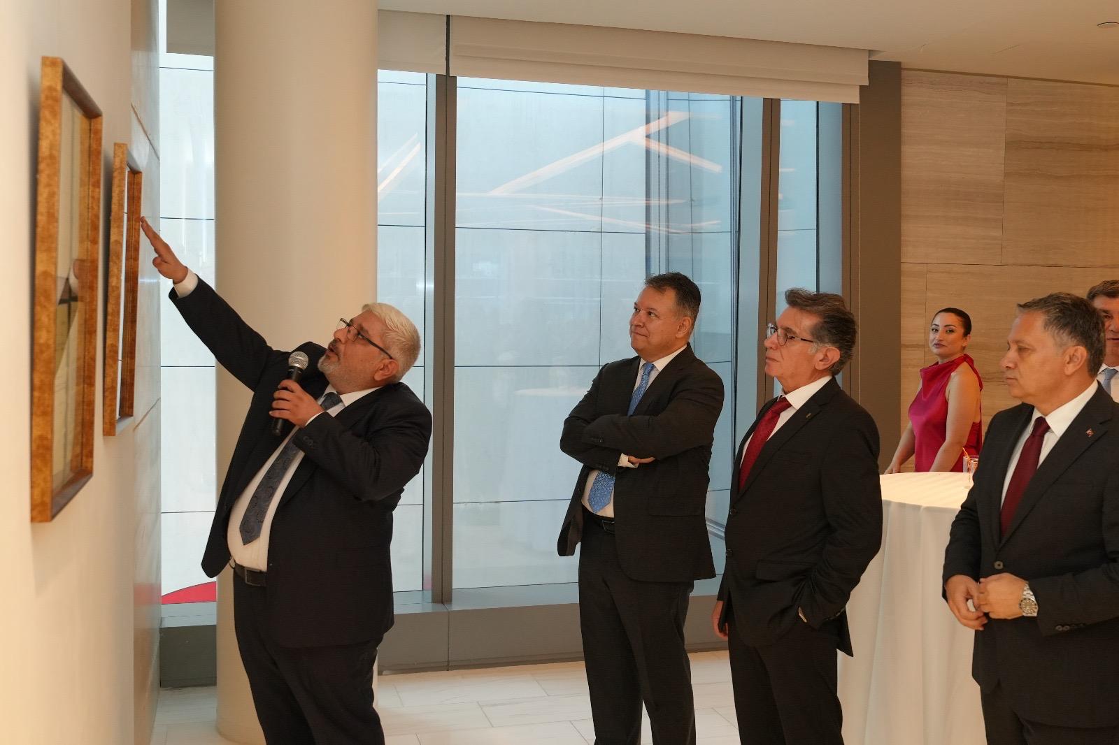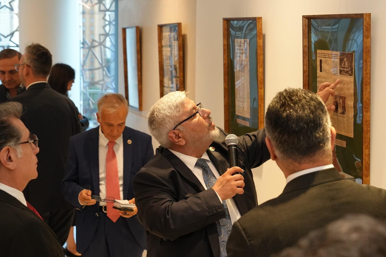 Resepsiyonun ardından Türkiye ile ABD arasındaki ilişkilerin tarihsel gelişimine ışık tutan, diplomatik belgelerden basın kupürlerine, kültürel etkinliklerin izlerinden toplumsal hafızaya kadar pek çok belgenin yer aldığı “Türkiye’deki Amerika: 1910-1970” başlıklı serginin açılışı yapıldı. Açılışta konuşan KGK Genel Başkanı Mehmet Ali Dim, serginin iki ülke ilişkilerindeki tarihsel sürece ve karanlıkta kalan süreçlere ışık tuttuğunu belirtti. Daha sonra Doç. Dr. Sefer Darıcı tarafından oluşturulan arşiv koleksiyonuna dayanan ve Dr. Özgenur Reyhan Güler küratörlüğünde hazırlanan sergi ziyaretçilere sunuldu. İlk defa sergilenen diplomatik belgelerden ve ilginç haberlerden oluşan basın kupürlerine, kültürel etkinliklerin izlerinden toplumsal hafızaya kadar pek çok belgenin yer aldığı sergi 20 Eylül’e kadar sanatseverlerle buluşmaya devam edecek. Sergi, 21-24 Eylül’de de New Jersey’deki Paterson Müzesi’nde sanatseverlerin ilgisine sunulacak. Sergide yer alan eserler Darıcı tarafından tek tek anlatıldı. Küratör Dr. Özgenur Reyhan Güler, çok kıymetli bir organizasyonun içerisinde bu sergiyi yaptıklarını ifade ederek, “Türk-Amerikan ilişkilerine ışık tutan ve Doç. Dr. Sefer Darıcı hocamın kişisel arşivinden çıkarttığı, bendeniz küratörlüğünü yaptığım hem de akademik çalışmalarıyla birleştirdiğim güzel bir deneyim oldu. Öncelikle Türkiye’deki Amerika sergisini açtık ardından da Küresel Gazeteciler Konseyi’nin önderliğinde bir ödül töreni ile taçlandırdık. Güzel bir organizasyon oldu ve Türk-Amerikan ilişkilerine dair diplomatik belgelerden, arşivlere, fotoğraflardan, Osmanlı belgelerine ulaştığımız güzel bir seri, 1910 ve 1970 arası gerçekleştirdiğimiz önemli bir sergiyi bir araya getirdik Türk toplumuyla” ifadelerini kullandı.