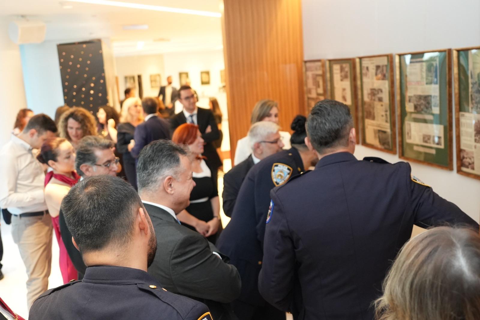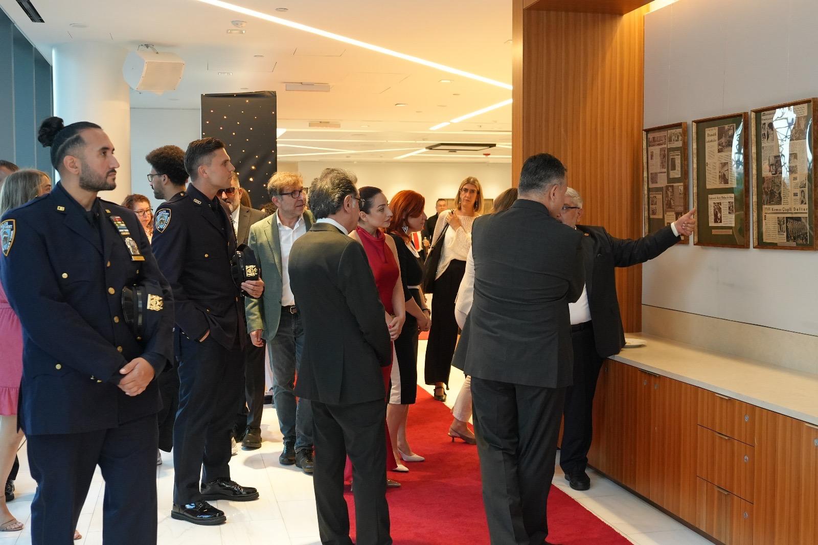 Törenin açılışında konuşan Türkiye’nin New York Başkonsolosu Yazal, medyanın gücüne ve kamu diplomasisine katkısına değinerek, bu organizasyona ev sahipliği yapmaktan mutlu olduklarını ifade etti. Başkonsolos Yazal, çok güzel bir gece olduğunu ifade ederek, “Aslında iki tane bambaşka ve tek başına bir geceyi dolduracak faaliyeti bir arada yapmış olduk. Sergiden başlayayım. Sergi gerçekten enteresan. Belki yeni kuşak için ne ifade edecek onu kestirmek zor ama benim kuşağım için bizim haberleri gazeteden aldığımız, haberciliğin ve dünyanın hızının ve bütün diplomasinin hızının daha düşük olduğu bir dönemi hatırlatıyor bize. O dönemden nerelere geldiğimizi bir daha düşündürüyor. Çok enteresan, hani o zamanlar haberin bu kadar zor alındığı, yayıldığı, aktarıldığı bir dönemde dahi Türkiye’de, Amerika’daki gelişmelerin aslında ne kadar yakından takip edildiğinin de bir göstergesi” dedi.