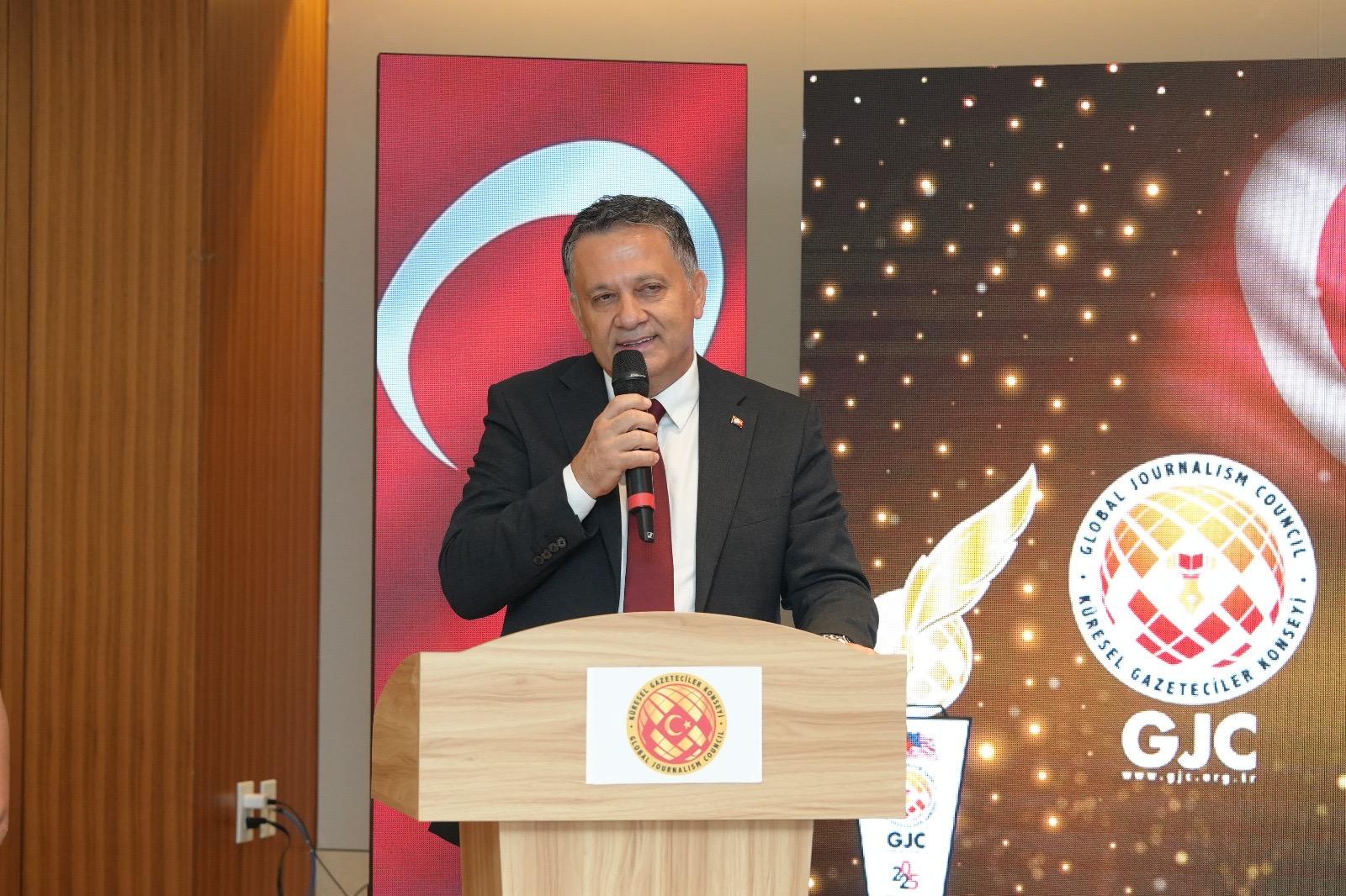 Daha sonra kürsüye gelen Küresel Gazeteciler Konseyi Genel Başkanı Mehmet Ali Dim “Amerika Birleşik Devletleri’nde görev yapan gazeteciler gerek Amerikalı olsun gerek Türk olsun hepsi bizim için kıymetli. Türk dostu olanlar özellikle çok kıymetli. Ve bugün bu akşam burada verdiğimiz ödüllerin sahipleri de zaten Türk dostu Amerikalı gazeteciler. Türkiye’nin daha çok lehine haber yapan, Türkiye’nin birçok hassas olduğu noktada hassasiyet gösteren gazeteciler ve tabii ki burada Türkiye adına uzun yıllardan beri görev yapan başarılı Türk gazeteciler. Küresel Gazeteciler Konseyi, sadece bir meslek kuruluşu değil, aynı zamanda kamu diplomasisine destek veren, kamu diplomasi faaliyetlerine, ülkemizin medya diplomasi yoluyla katkı sunan bir örgüt olduğumuz için bu bizim misyonumuza uygun bir faaliyet oldu” dedi.
