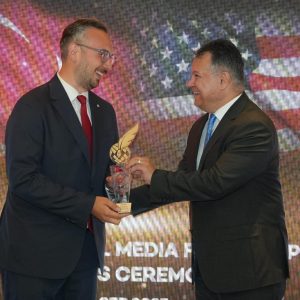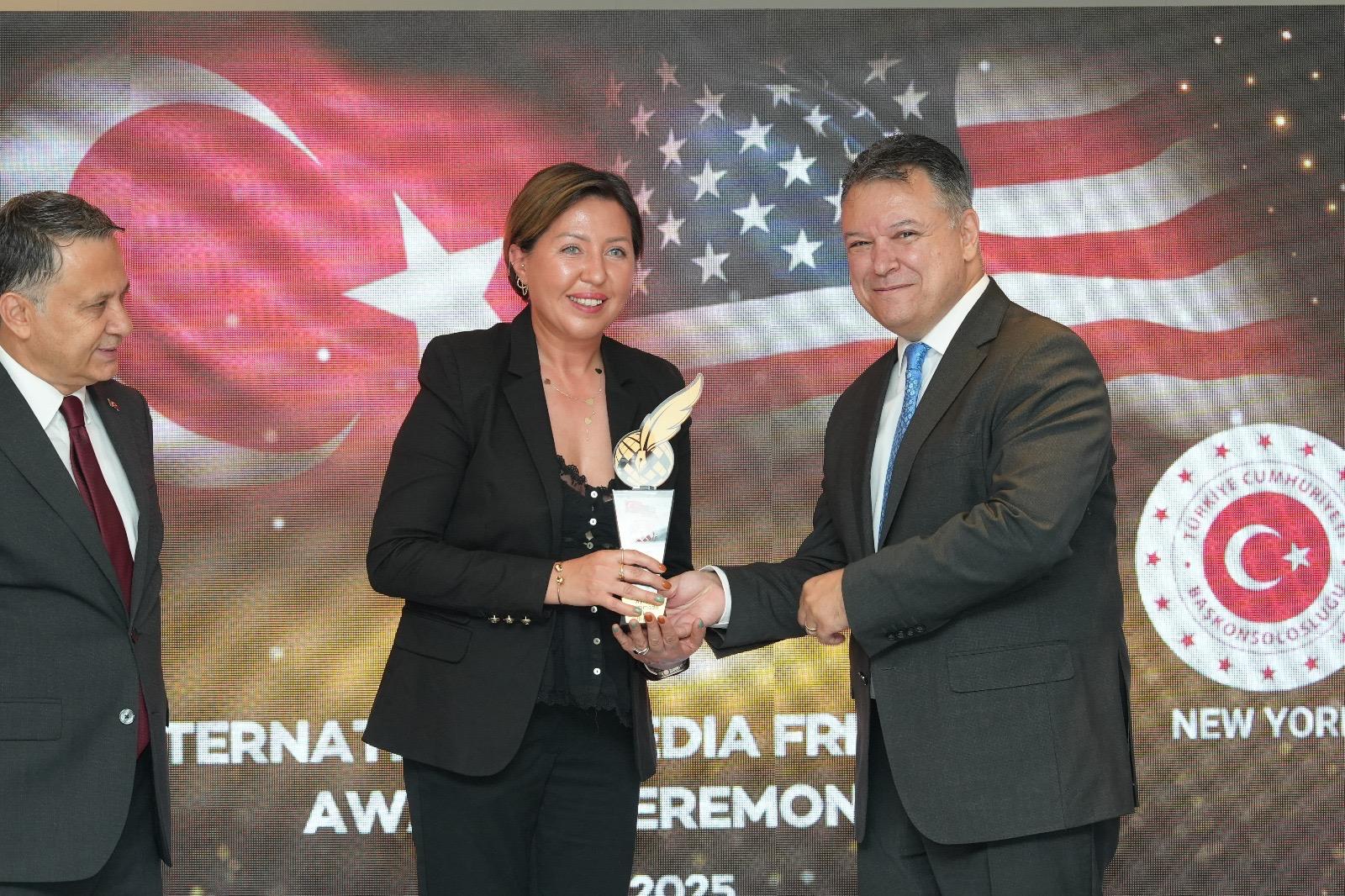 Konuşmalardan sonra Dilek Kaya’nın sunumuyla devam eden ödül töreninde, İHA’dan Aytan Mammadil Rilley En iyi ABD Medya Operasyon Ödülü, Yavuz Donat Behzat Barış Onur Ödülü, Anadolu Ajansı’ndan Şerife Çetin En İyi BM Muhabiri Ödülü, CNN Türk’ten Yunus Paksoy En iyi Diplomasi Muhabiri Ödülü,