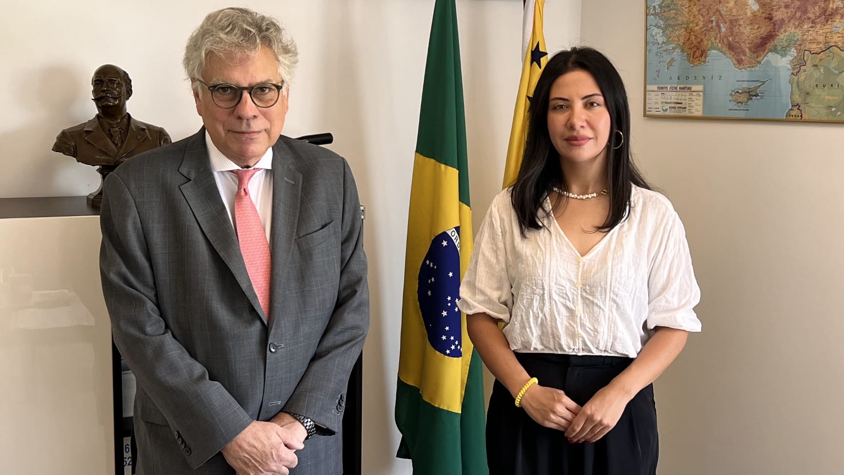 Resepsiyonda Latin Amerika ülkelerinin Büyükelçileri ile KGK’nın 2025 yılı Şubat ayında gerçekleştirmeyi planladığı Küresel Medya Kongresi ile ilgili bilgi veren Dr. Esra Öztürk, ayrıca konuyla ilgili olarak Brezilya’nın Ankara Büyükelçisi Carlos Martins Ceglia’ya da bir nezaket ziyareti gerçekleştirerek iki ülke ilişkilerinin ve medya işbirliklerinin Küresel Medya Kongresinde güçlendirilmesi için KGK’nın çalışmalarının yoğunlaştırılacağını bildirdi.