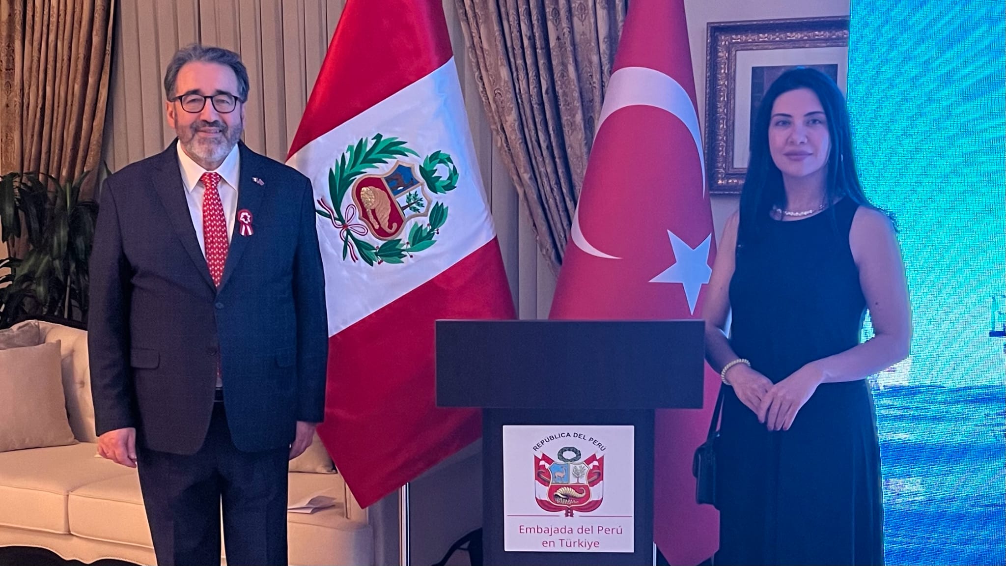 Ankara’da Peru’nun bağımsızlığının 203. ve Ayacucho Savaşı’nın 200. yıl dönümü vesilesiyle düzenlenen resepsiyonda Küresel Gazeteciler Konseyi (KGK) de temsil edildi. Peru’nun Ankara Büyükelçiliği ev sahipliğinde Peru’nun Ankara Büyükelçiliğinde düzenlenen resepsiyona Peru’nun Ankara Büyükelçisi Cesar de las Casas, Dışişleri Bakanlığı Latin Amerika İkili İlişkiler Genel Müdürü Büyükelçi Yaprak Balkan, diplomatlar ve siyasetçiler ile diplomatik misyonlar da katıldı. Resepsiyonda KGK’yı, Uluslararası İşbirlikleri Danışmanı ve Yaygın Medya Meclis Başkan Yardımcısı Dr. Esra Öztürk temsil etti.